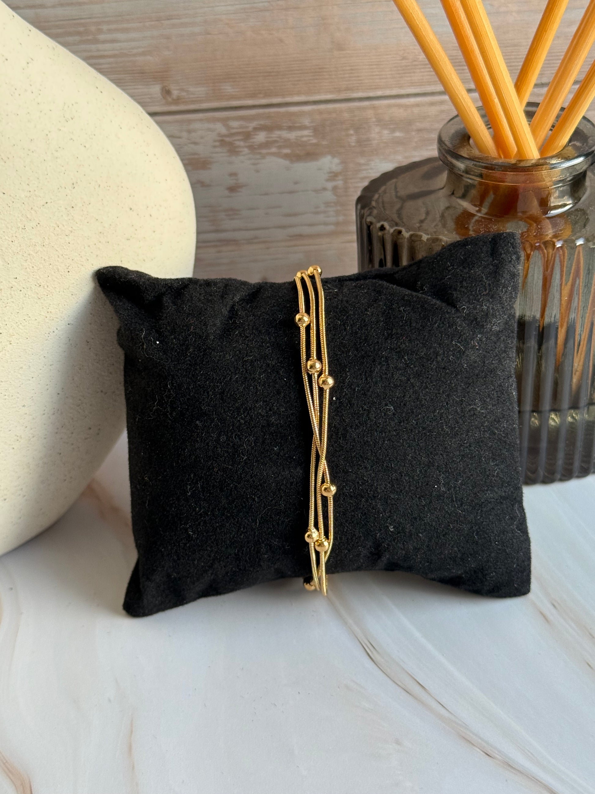 Round Snake Bead Triple Layer Bracelet